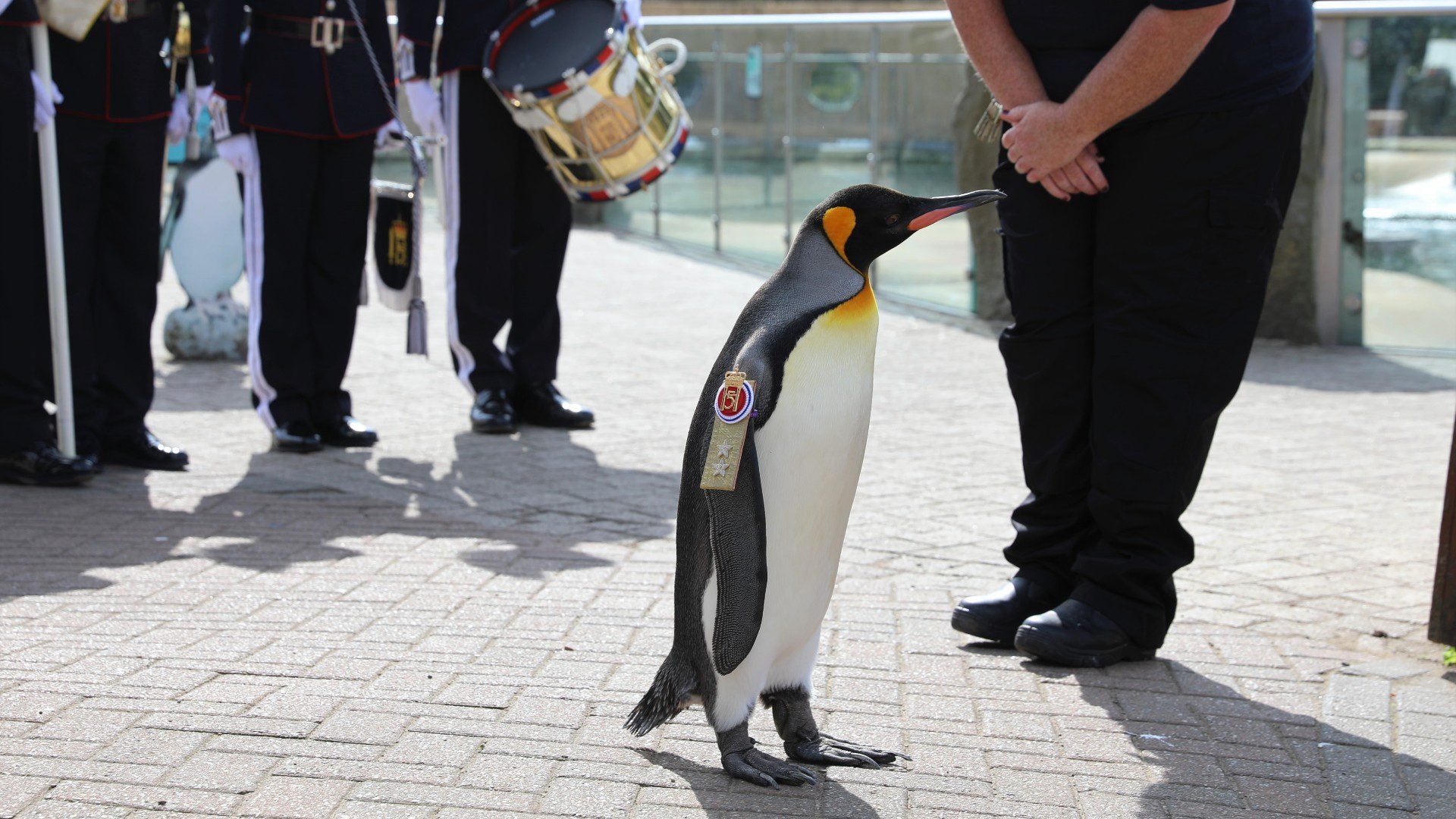Se trata de Sir Nils Olav III, un pingüino que ha sido condecorado y ascendido de rango al tercer cargo más alto que hay en las fuerzas armadas con el título de General de División de la Guardia del Rey en una ceremonia en el zoológico de Edimburgo, lugar que contó con la presencia de más de 160 soldados.
