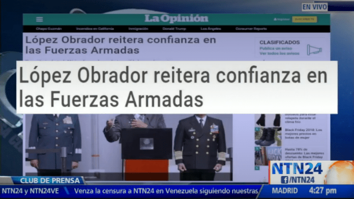 AMLO pide apoyo a fuerza armada para mitigar la violencia en México