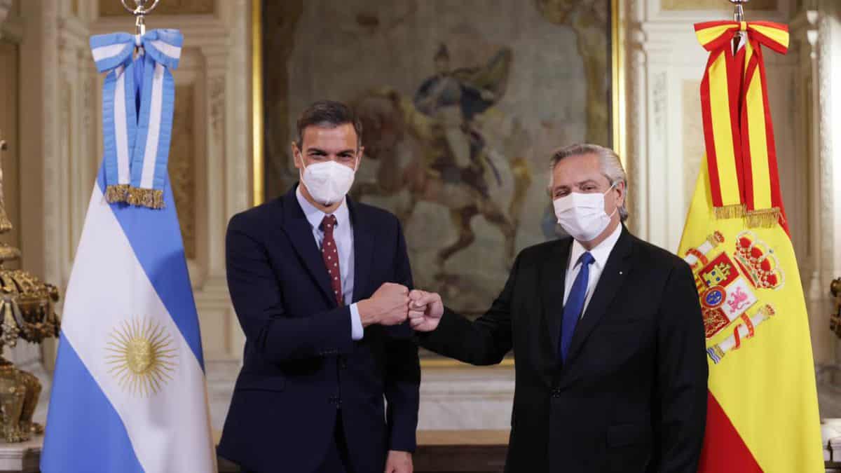 El mandatario argentino Alberto Fernández y el presidente del gobierno español, Pedro Sánchez, se reúnen este miércoles en Buenos Aires para reforzar lazos bilaterales cuando el país sudamericano enfrenta un momento crítico de la pandemia y busca respaldo a su negociación por la deuda.