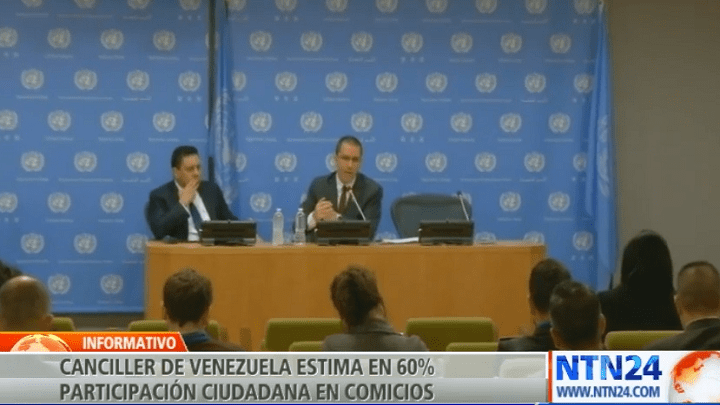 El ministro de relaciones exteriores de Venezuela, Jorge Arreaza, ratificó este miércoles en Nueva York que la ONU no acompañará las elecciones presidenciales por la prontitud del proceso, a la vez que aseguró que “siempre el pueblo venezolano tiene la bendición de poder elegir de verdad”.