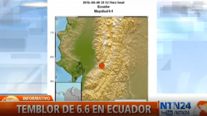 Minutos después se registró otro temblor en Ecuador de magnitud de 6.6, cuyo epicentro fue en Chimborazo, centro del país.