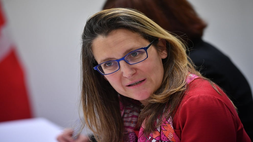 La ministra canadiense de Relaciones Exteriores, Chrystia Freeland, que recibió a una delegación del gobierno mexicano, estimó el martes que los aranceles estadounidenses al aluminio y al acero deberían ser "abolidos" para tener "un verdadero libre comercio" en América del Norte.