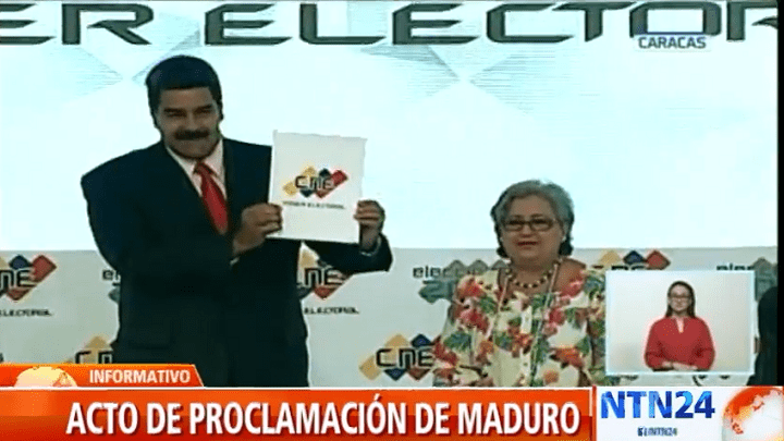 Maduro fue reelegido frente a una abstención de 54.01 % registrada el domingo, siendo la más alta desde 1958, según cifras oficiales.