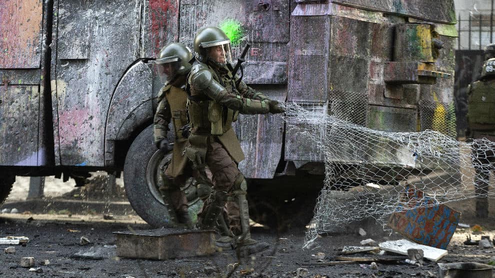 El uso de perdigones para dispersar a los manifestantes es una de las mayores críticas a la policía chilena, en especial después de que provocaran graves lesiones oculares a cerca de 300 personas. También se le cuestiona por el excesivo uso de gas lacrimógeno y detenciones arbitrarias.