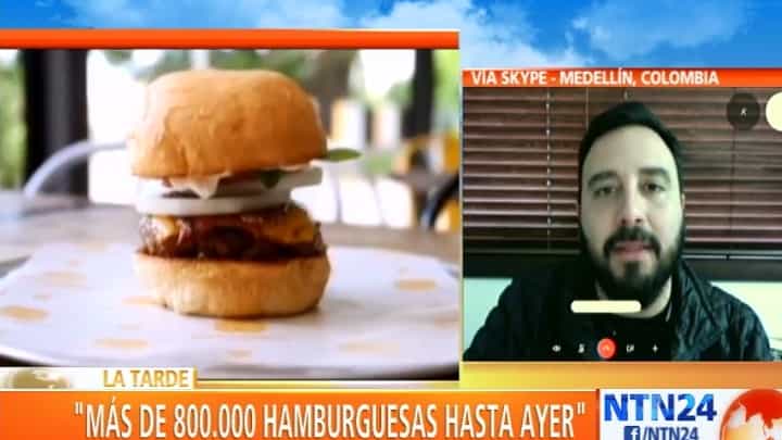 Tulio Zuluaga, creador del Burguer Master en Colombia, habló con NTN24 sobre el reto que busca impulsar a los jóvenes emprendedores y dijo que las cifras han ido subiendo porque hasta este sábado “se habían vendido 800.000 hamburguesas”, por lo que señaló que puede decir “misión cumplida”.