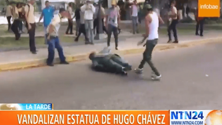 Esta es la segunda vez que los pobladores de tumban una estatua de Chávez. En esta ocasión fue por el racionamiento eléctrico