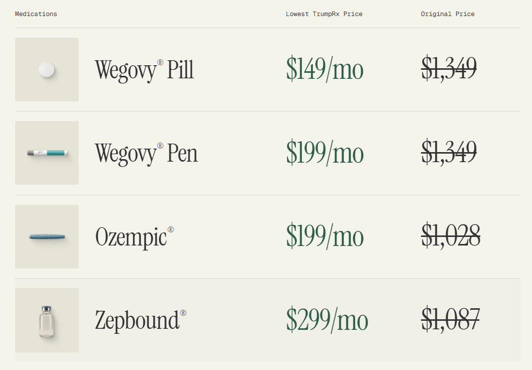 El sitio web TrumpRX.gov tienen descuentos en más de 40 medicamentos populares, entre ellos, fármacos antiobesidad como el Ozempic.