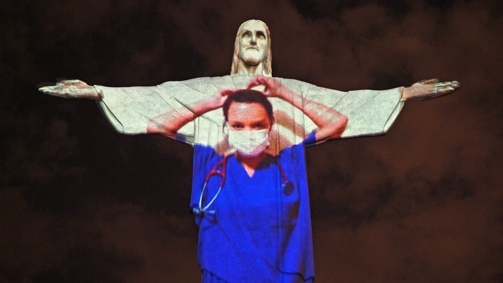 La icónica estatua del Cristo Redentor ubicado en Rio de Janeiro, Brasil, se vistió de médico para homenajear al personal de la salud que batalla contra la pandemia por el coronavirus.