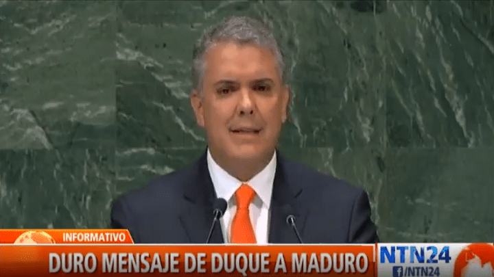 El presidente de Colombia, Iván Duque Márquez, presentó su primer discurso como mandatario ante la 73 Asamblea General de las Naciones Unidas en Nueva York. El dirigente colombiano trató temas tanto internos del país como el proceso de paz con las FARC y el narcotráfico, como a nivel externo cuando se refirió a la crisis en Venezuela.