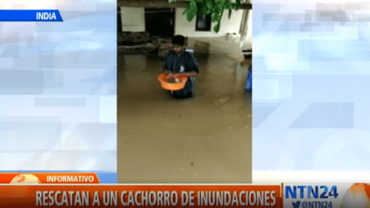 En Kerala, India un cachorro fue rescatado en medio de las inundaciones que vive esta región, el animal fue sacado dentro de una cubeta. El conmovedor rescate quedó captado en video.