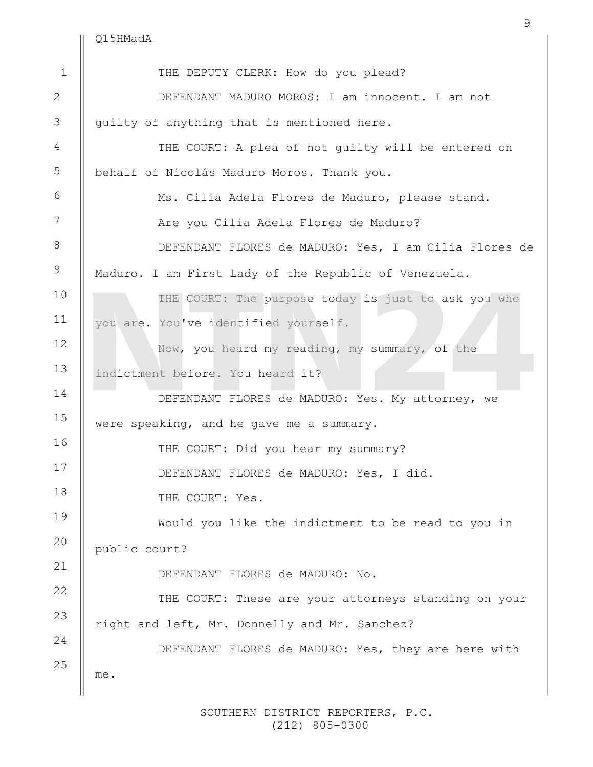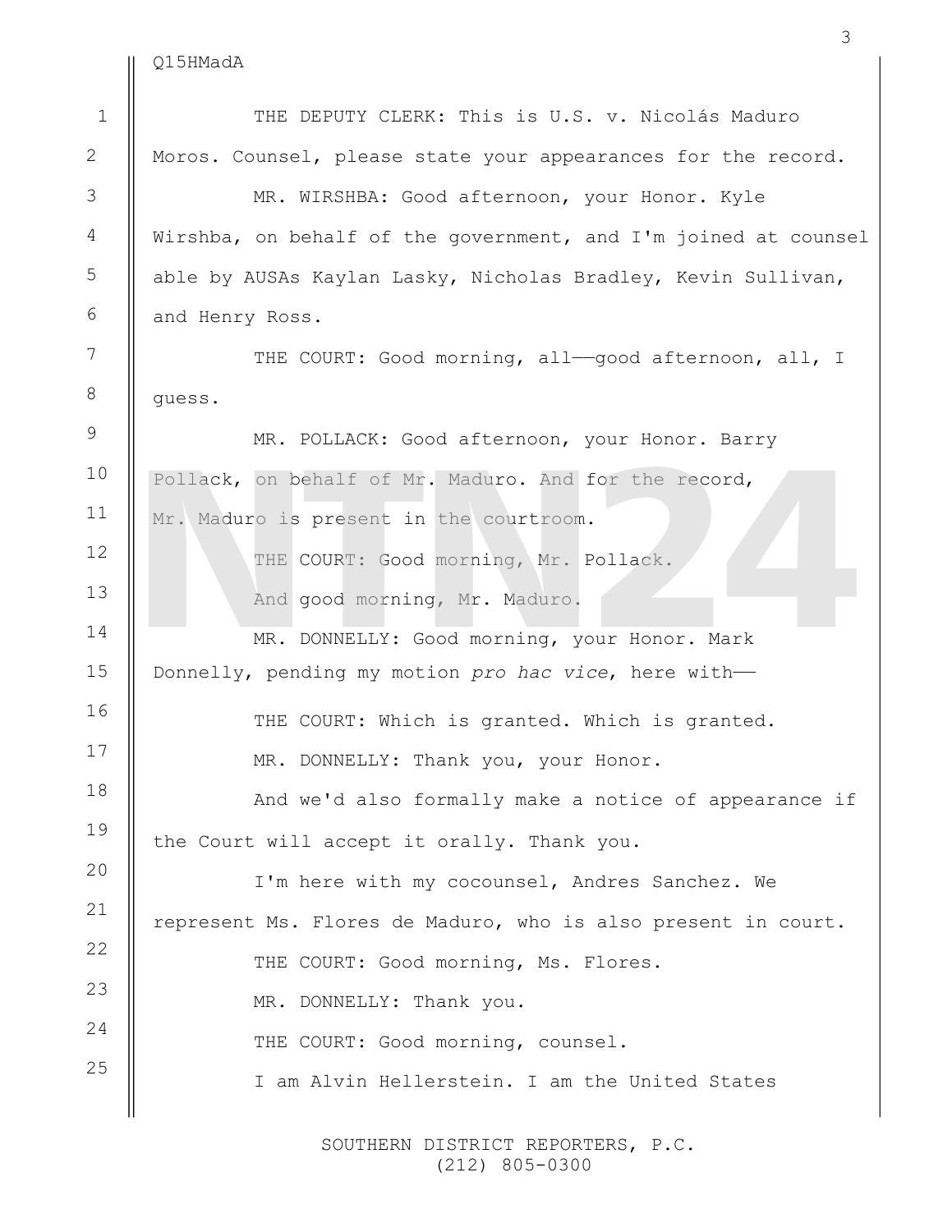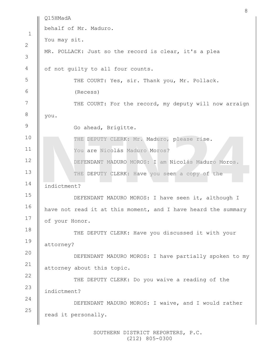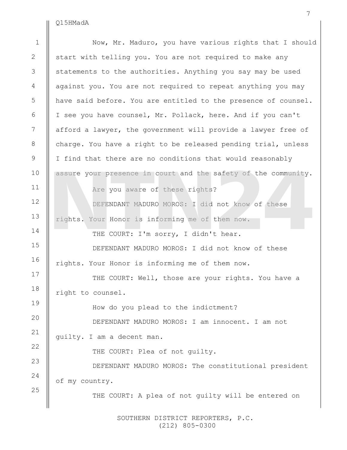 NTN24 tuvo acceso en primicia a la transcripción completa de la comparecencia de Nicolás Maduro ante la Corte del Distrito Sur de Nueva York.