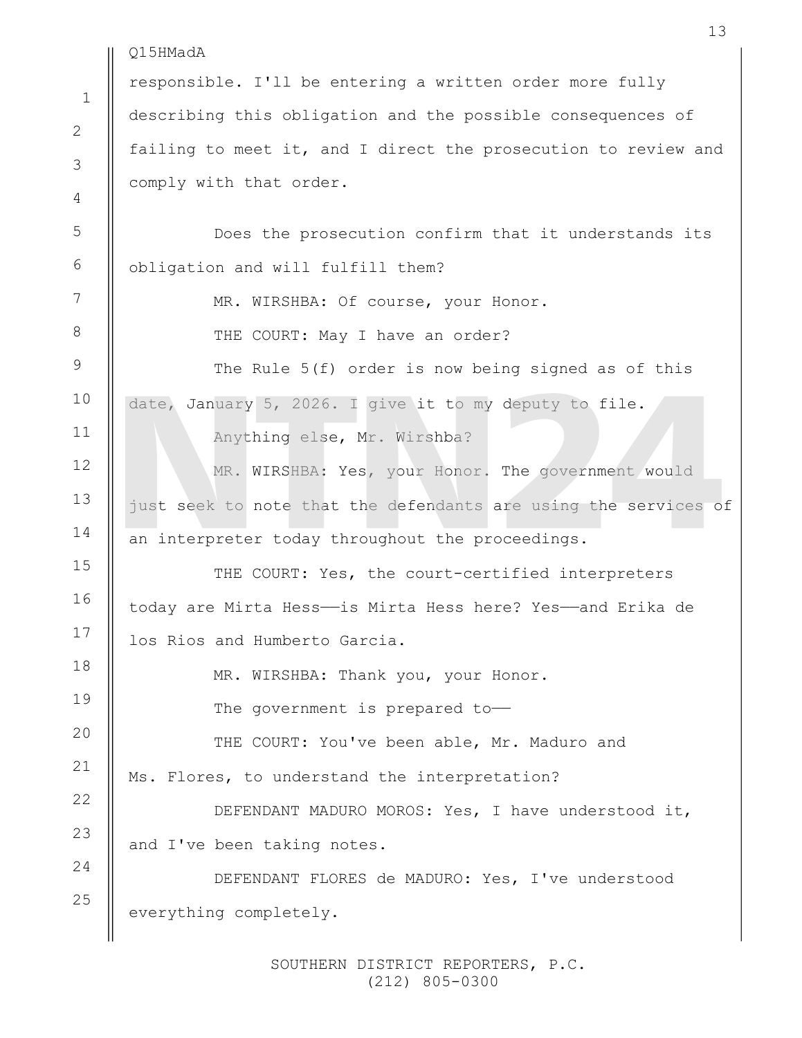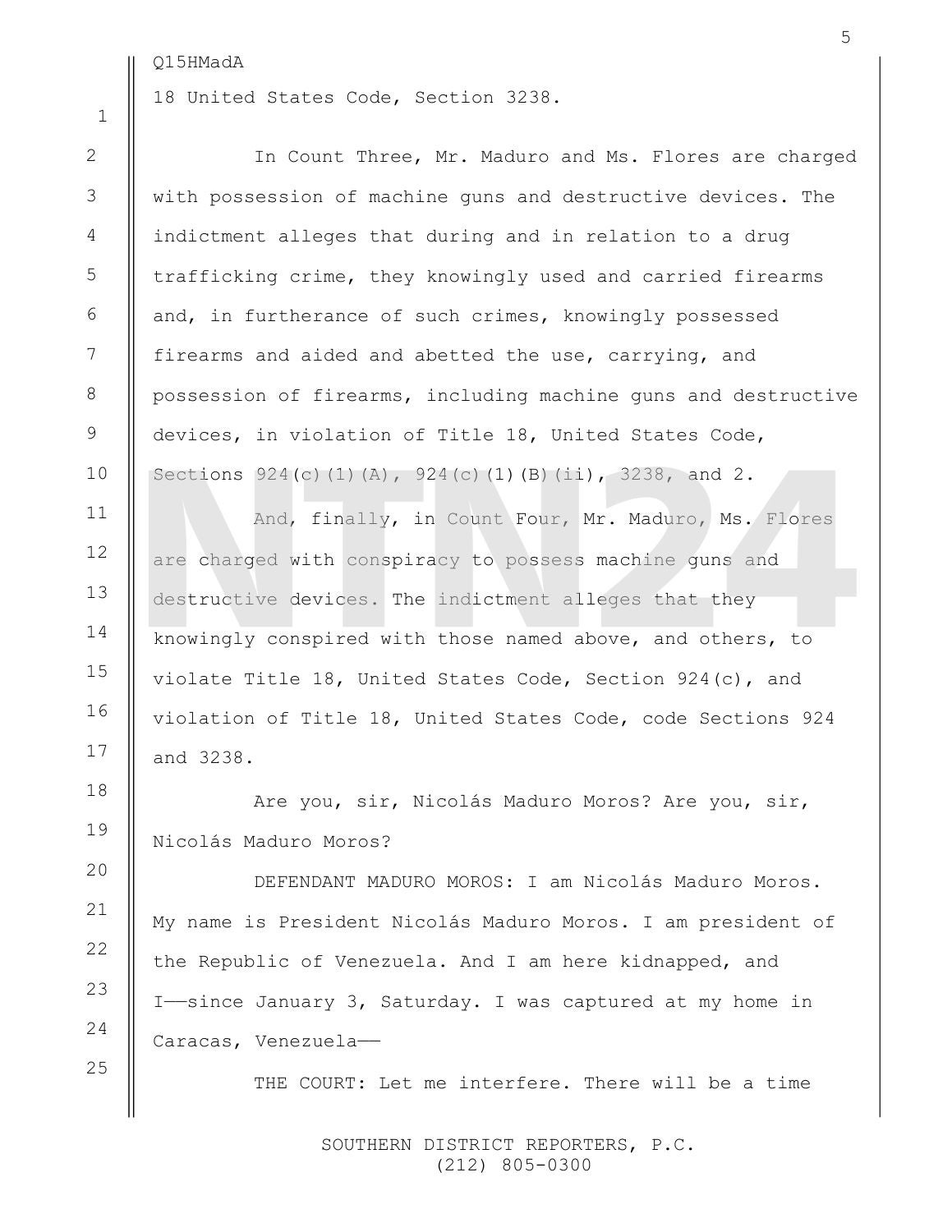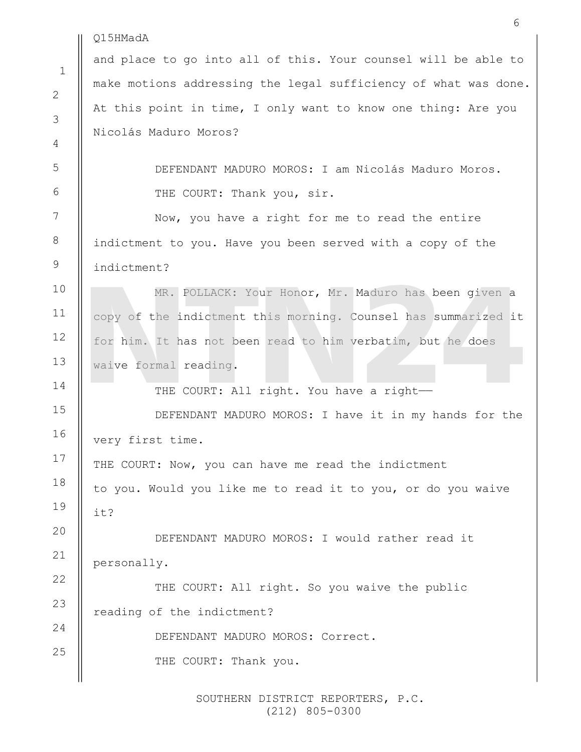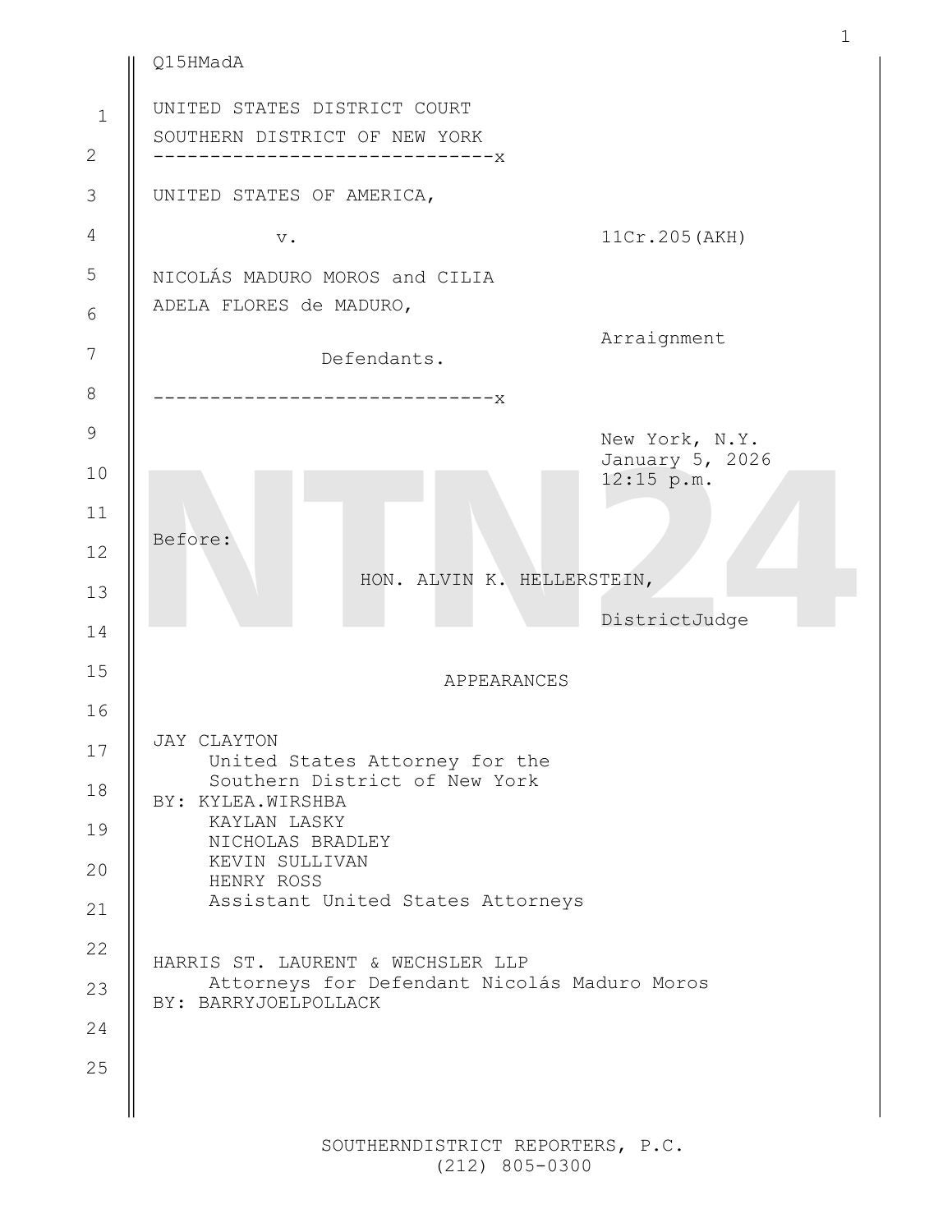 NTN24 tuvo acceso en primicia a la transcripción completa de la comparecencia de Nicolás Maduro ante la Corte del Distrito Sur de Nueva York.