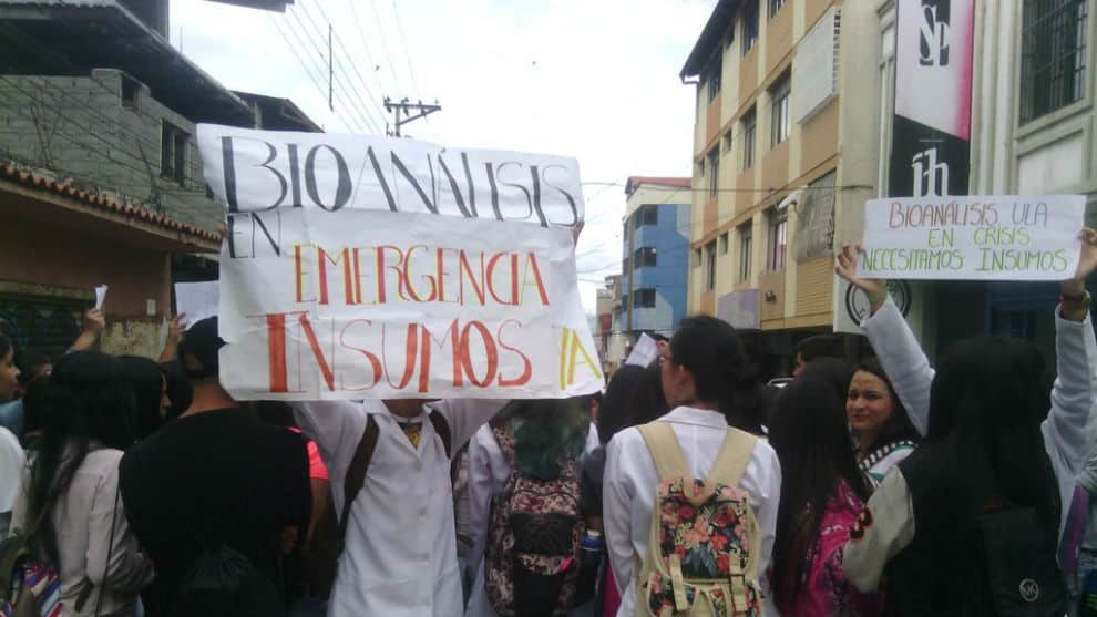 Estudiantes de Enfermería y Bionálisis de Mérida protestaron por la escasez de reactivos