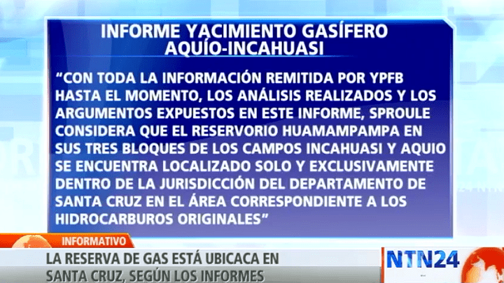 Este informe pondría fin al conflicto que mantienen los gobiernos de Santa Cruz y Chuquisaca, suroriente de Bolivia, por las regalías del campo gasífero.