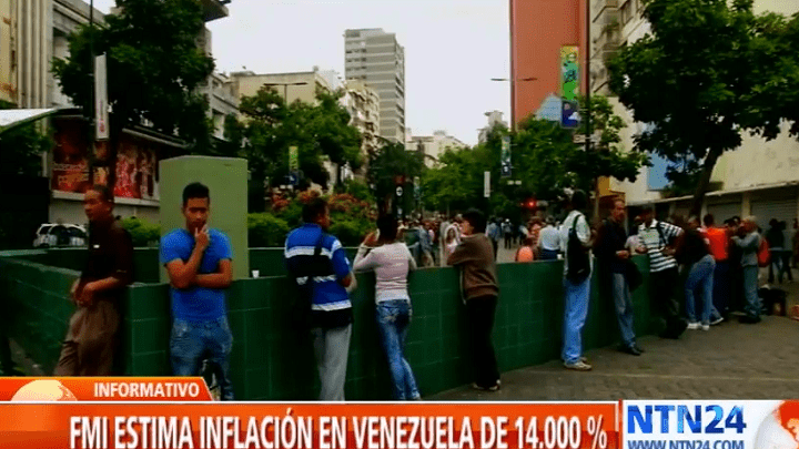 El Fondo Monetario Internacional (FMI) prevé una inflación de casi el 14.000 % en Venezuela para este año y una caída del producto interno bruto (PIB) de un 15 %, en lo que sería su quinto año en recesión.