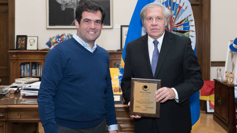 La Organización No Gubernamental (ONG) Foro Penal ofreció un reconocimiento este viernes 15 de noviembre al secretario general de la Organización de los Estados Americanos (OEA), Luis Almagro, por su lucha constante por los derechos civiles y políticos de Venezuela que en los últimos años se han visto gravemente afectados por el régimen de Nicolás Maduro.