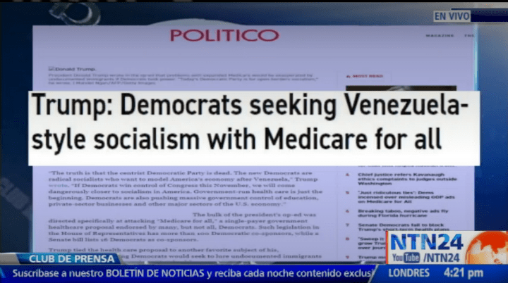 El presidente Donald Trump caldeó los ánimos esta semana al asegurar que sus contrincantes políticos del partido demócrata son simpatizantes de la ideología chavista que gobierna en Venezuela.