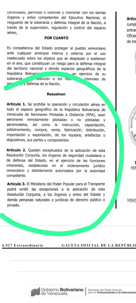 El decreto publicado en la Gaceta Oficial número 6.927 de fecha 18 de agosto de 2025, estipula también la prohibición de compra, venta, fabricación y capacitación de las aeronaves pilotadas a distancia.