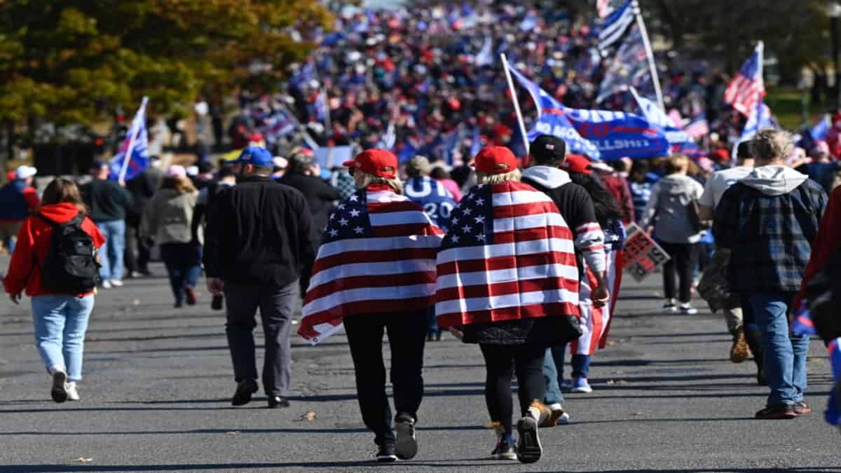 Los manifestantes pro-Trump recorrieron las calles en su mayoría sin mascarillas contra el coronavirus y clamando un segundo mandato para el republicano, en un ambiente de mitin de campaña.