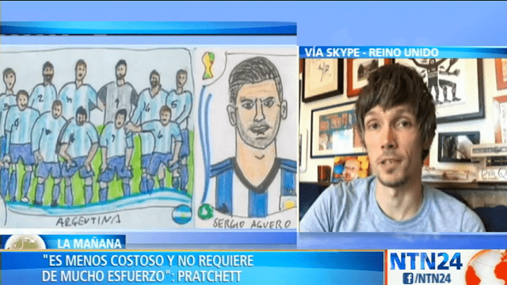 “Esto ocurrió a partir del Mundial de 2014 cuando estaba reunido con unos amigos que estaban reuniendo las calcomanías para el álbum del Mundial. Yo les dije que era muy costoso para mí y decidí empezar la idea de hacer mi propio álbum a partir de dibujos”, aseguró ante NTN24 el creador del álbum, Alex Pratchett.