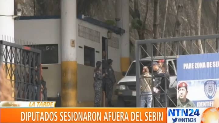 Diputados de la Asamblea Nacional sesionaron este miércoles frente a la sede del Servicio Bolivariano de Inteligencia Nacional, El Helicoide, donde se encuentran más de 50 presos políticos y 100 detenidos comunes.