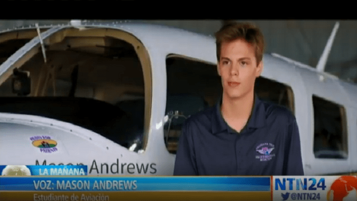 “Mi nombre es Mason Andrews, tengo 18 años y soy un estudiante de aviación profesional de Louisiana Tech. El 14 de julio de 2018 intentaré alcanzar el récord mundial al convertirme en el piloto más joven en completar una vuelta al mundo solo. Necesito recaudar USD 125.000 para comprar el equipamiento especial que me permitirá hacer la travesía”, escribió en una carta.