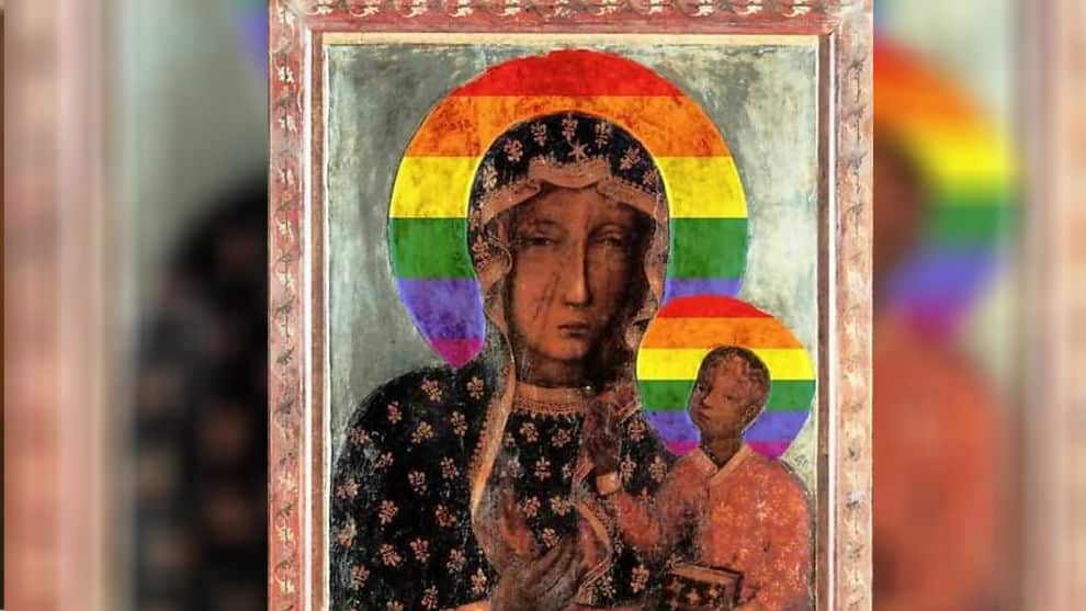 Polaca detenida por "profanar" a la Virgen María con aureola arcoíris