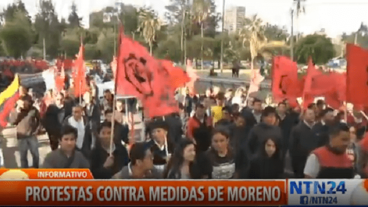 Protestas en Ecuador contra el paquete de medidas económicas adoptadas por el gobierno de Lenín Moreno. En la tarde de este miércoles una marcha de trabajadores y sindicatos recorrió la capital, Quito, para exigir se revisen la decisiones de aumentar los precios de gasolina extra, condonación de multas a empresas evasoras de impuestos y despidos en el sector público.