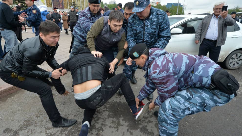 Unos quinientos manifestantes opositores fueron detenidos este domingo en Kazajistán, en las primeras elecciones presidenciales de la historia de esta ex república soviética sin la participación de Nursultán Nazarbáyev, 30 años presidente, pero bajo su sombra.