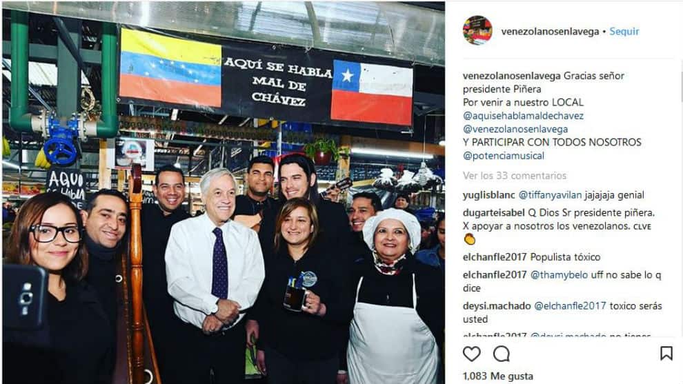 El mandatario chileno visitaba el mercado popular de La Vega donde su recibido en el local de venezolanos "Aquí se habla mal de Chávez"