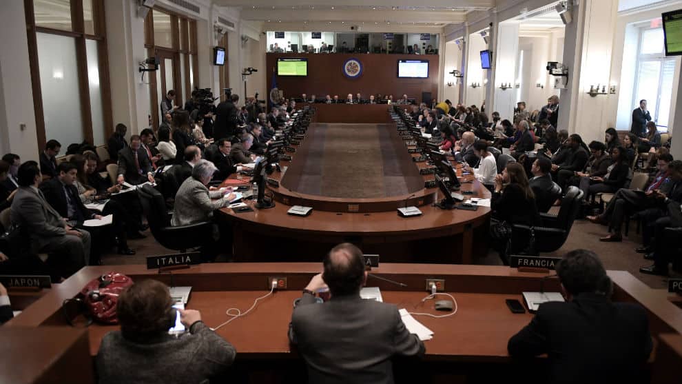 La reunión en la OEA, que Venezuela consideró "una grave agresión injerencista", se celebrará a petición de Argentina, Brasil, Canadá, Chile, Costa Rica, Estados Unidos, Guatemala, Honduras, México, Panamá, Paraguay y Perú bajo la Presidencia del Consejo Permanente de Colombia.