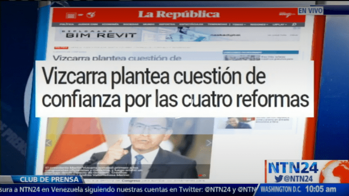 Martín Vizcarra, el presidente peruano, le pide un acto de confianza al Congreso para aprobar las cuatro reformas.