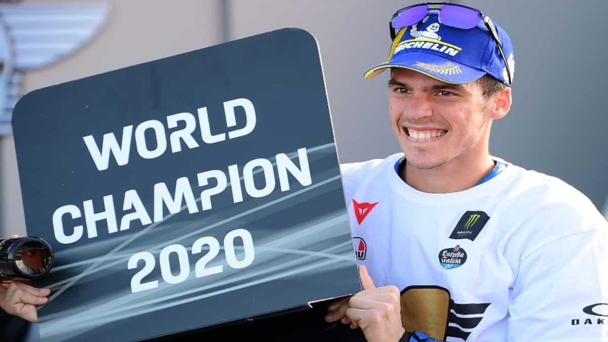 El piloto balear sucede en el palmarés a su compatriota Marc Márquez, sextuple campeón del mundo, que no pudo participar en esta temporada del Mundial de MotoGP debido a una fractura del brazo, sufrida en la primera carrera de la temporada.