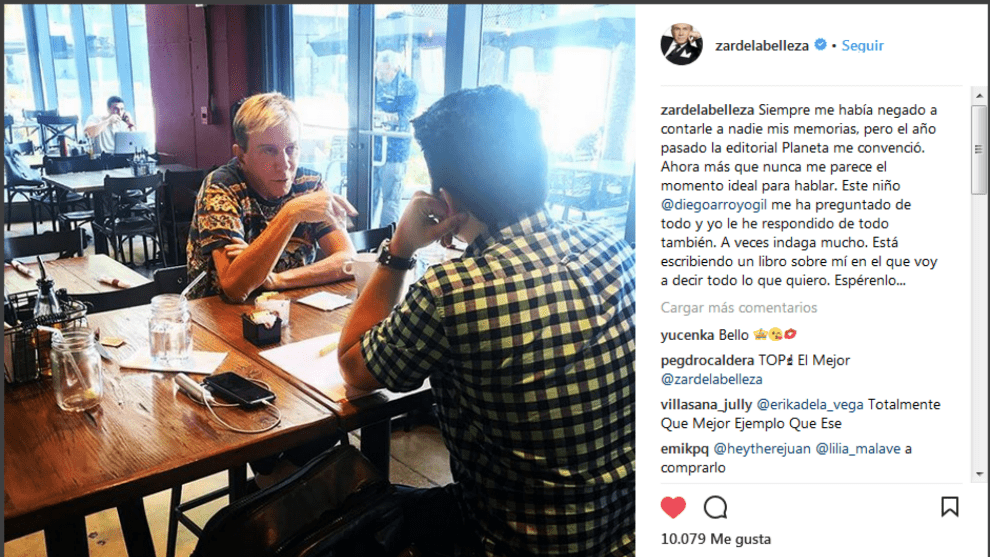 "Siempre me había negado a contarle a nadie mis memorias, pero el año pasado la editorial Planeta me convenció", señala en el comentario que acompaña una fotografía en la que aparece hablando frente a una persona que toma notas en un café.