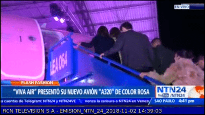 La aerolínea colombiana "Viva Air" en su compromiso con la lucha y prevención del cáncer de mama se vistió de rosa.