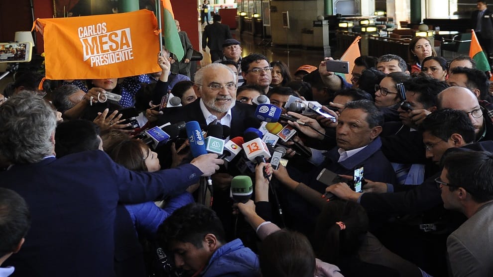 Candidato Carlos Mesa desconoce públicamente triunfo de Evo Morales